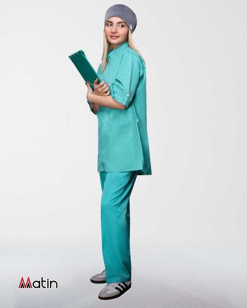 یکی از خوشرنگ ترین اسکراب هایی که میتونین ثبت سفارش کنید این اسکراب زیپی سبز خوشرنگ هستش.این اسکراب پزشکی سبز خیلی راحت میتونید استایل کنید وجنس پارچش چهارفصله. این اسکراب با شلوار سفیدمیتونید استایل کنید.شلوار سفید و اسکراب و همین حالا از سایت ثبت سفارش کنید