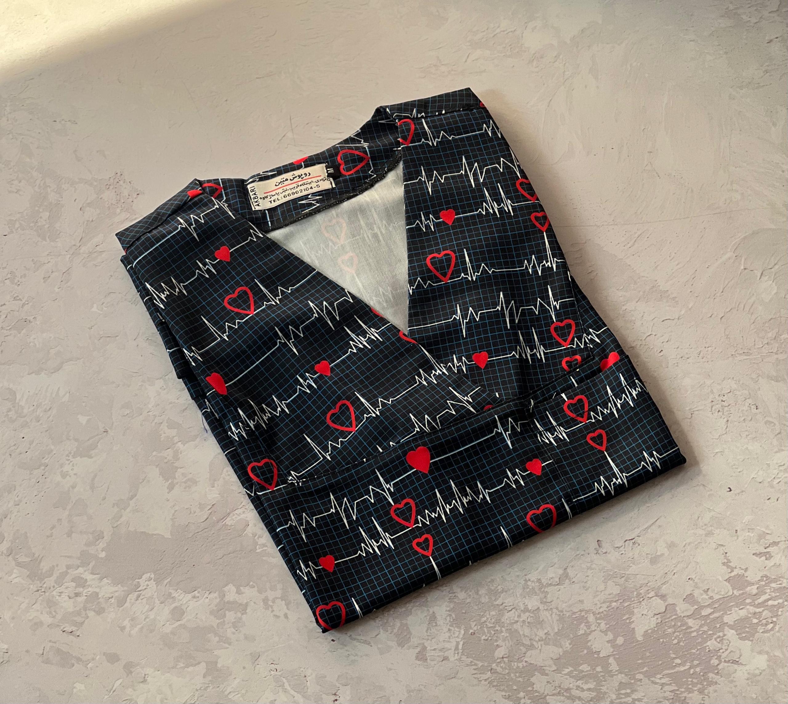 خرید آنلاین اسکراب طرحدار مشکی پزشکی+طرح ضربان قلب