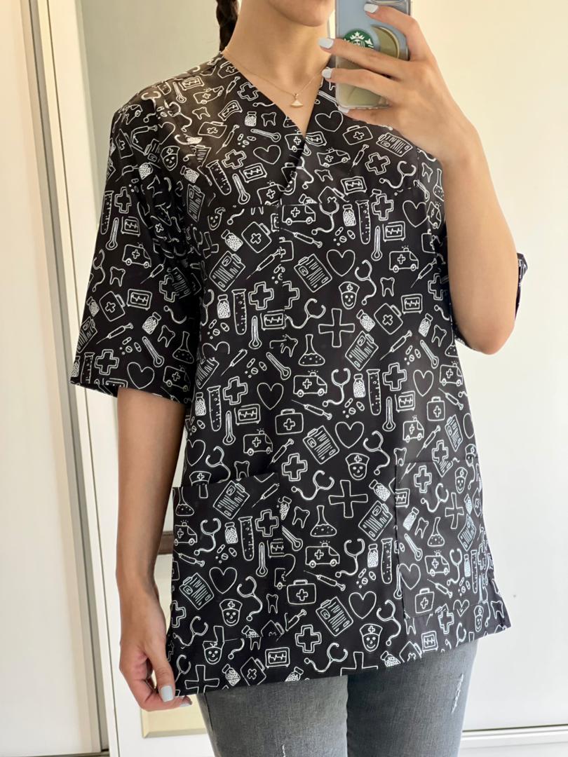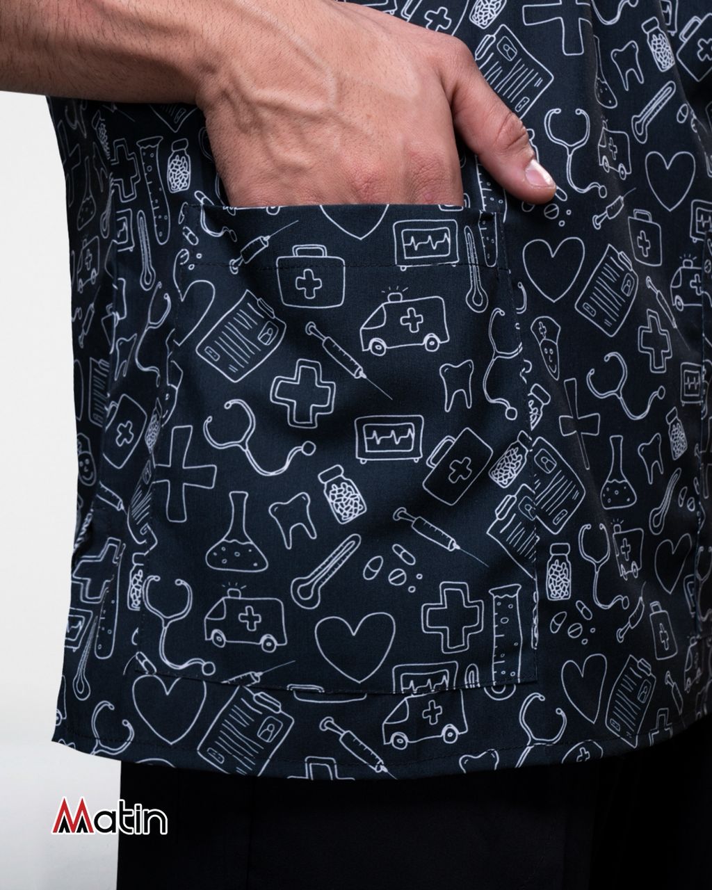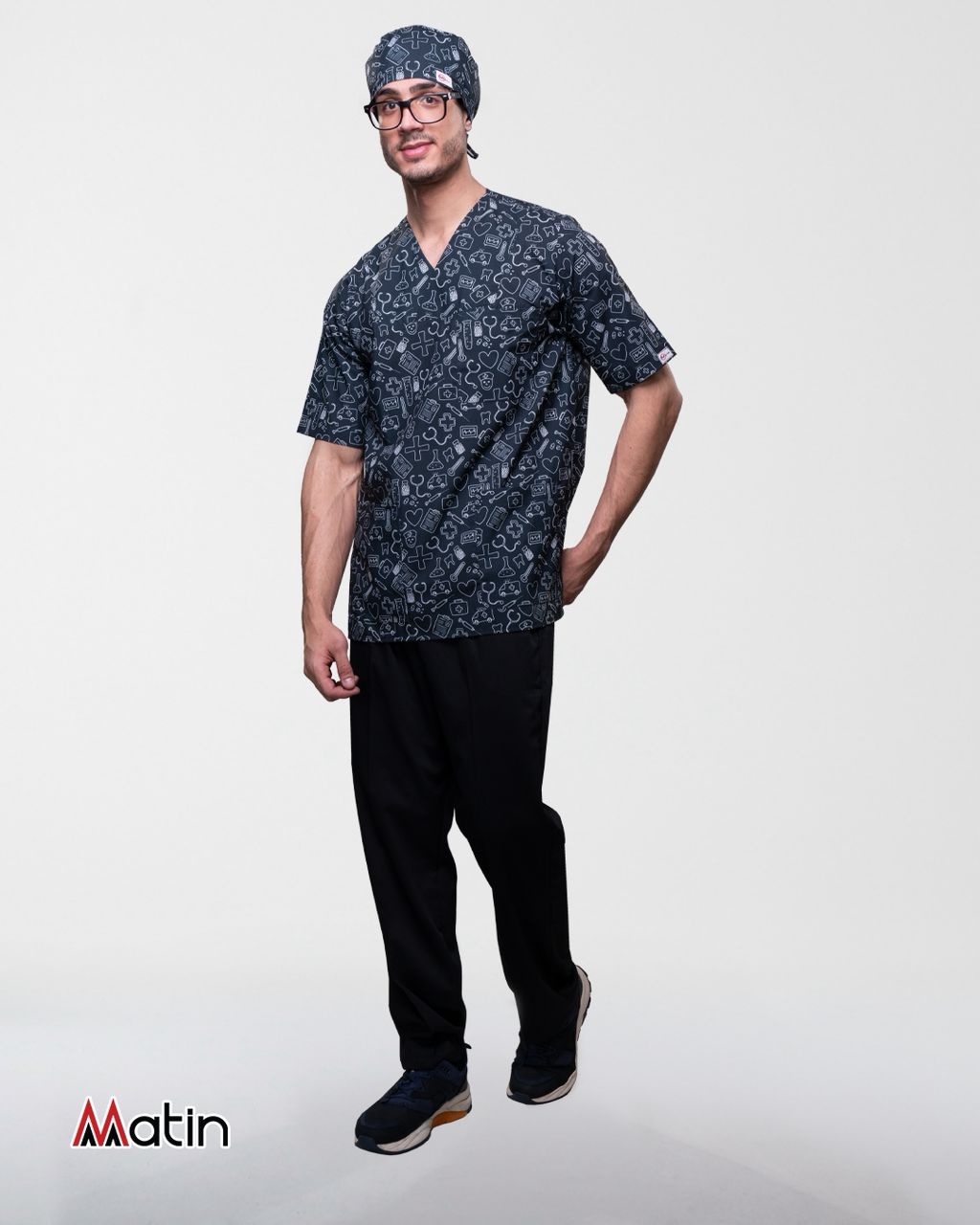 اسکراب مدیکال مردانه طرحدار مشکی – لباس کار حرفهای مخصوص پزشکان و دندانپزشکان.اسکراب مردانه طرحدار با رنگ مشکی شیک و پارچه سبک و مقاوم، مناسب پزشکان، دندانپزشکان و کادر درمان حرفهای. طراحی مدرن، دوخت استاندارد و راحتی در تمام طول روز کاری.این اسکراب مدیکال مردانه طرحدار ترکیبی از استایل حرفهای و راحتی روزمره است.پارچهی سبک، ضدتعریق و باکیفیت، باعث میشود در طول شیفتهای کاری احساس راحتی داشته باشید، در حالیکه طراحی خاص و رنگ مشکی آن، ظاهری مرتب و جذاب به استایل شما میبخشد.طرحهای ظریف الهامگرفته از نمادهای پزشکی روی پارچه، جلوهای مدرن و تخصصی ایجاد کرده است.این مدل برای پزشکان، دندانپزشکان، پرستاران و پرسنل کلینیکی طراحی شده و برای استفاده روزانه در محیطهای درمانی ایدهآل است.ویژگیها:•رنگ: مشکی طرحدار با چاپ نمادهای پزشکی•پارچه: سبک، تنفسپذیر و مقاوم در برابر شستوشو•طراحی آزاد برای راحتی حرکتی•دارای جیبهای کاربردی برای وسایل ضروری•مناسب برای پزشکان، دندانپزشکان، پرستاران و تکنسینها•دوخت صنعتی با دوام بالا